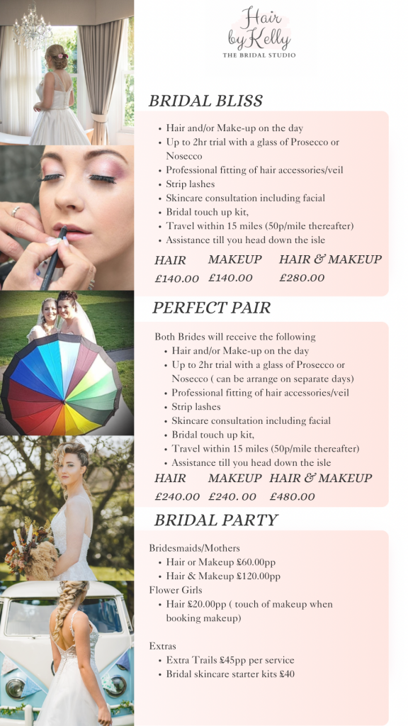 At Hair by Kelly, we believe in flexibility over fixed packages. When booking your Bridal hair and makeup you have the freedom to mix and match services to create a look that suits you best. Whether you need help choosing the perfect hairstyle, makeup look, or accessories to complement your outfit, we’re here to guide you. We also offer expert advice on hair extensions, ensuring they blend seamlessly for a natural, flawless finish. Whatever your vision, we’re here to bring it to life with a fully personalised experience.